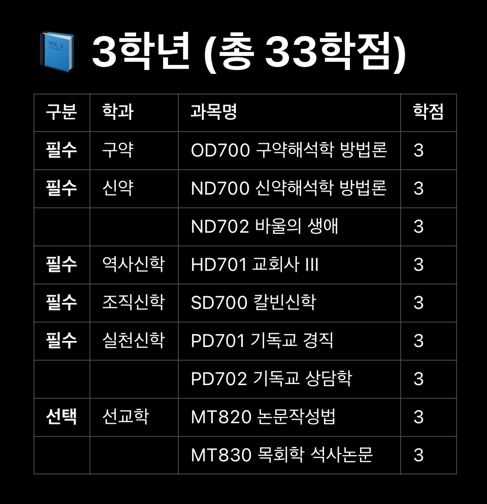 연구에 의한 석사과정은 전형적으로 1년 풀타임으로 하거나 2~3년 파트타임 과정이다. 이것은 3만단어의 논문을 쓰는 개별적인 연구 프로젝트이다. 목회학 석사 과정의 사명은 학생들에게 지식과 방법론의 전문가, 대학원 과정과 경력에 있어서 성공하는 능력, 그리고 다문화와 세상에서 일반인에게 요구되는 기량과 경향을 쌓는데 일취월장 하도로 교육적인 경험과 환경을 제공하는 것이다.